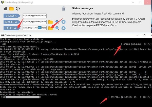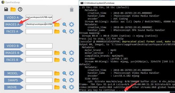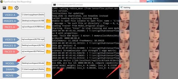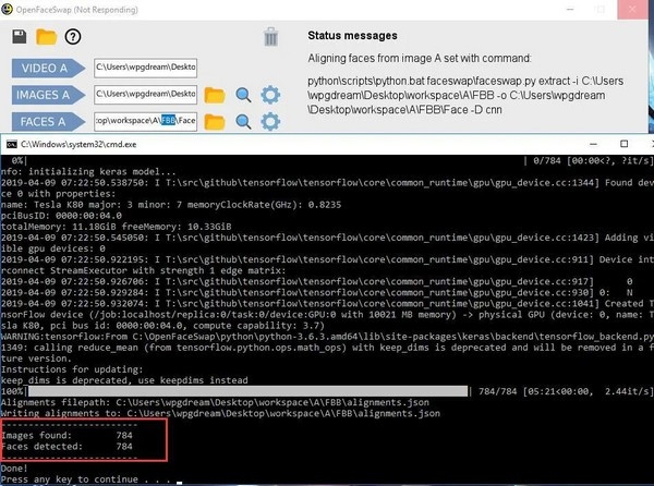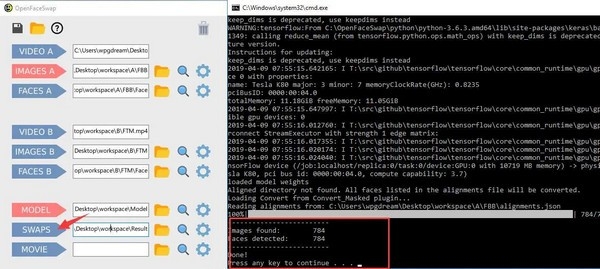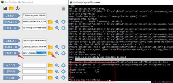 点击 SWAPS开始换脸。跳出黑色窗口,出现进度条。最后出现Done! 就证明转换已经全部完成。