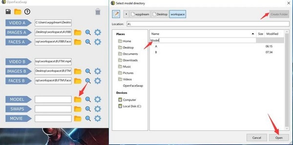 创建一个叫workspace的目录用来放你的视频图片等素材。 所谓换脸,就是把张三的脸放到李四头上,或者反过来。所以你需要在workspace下面在创建两个目录A和B。用来放两个人的素材。
