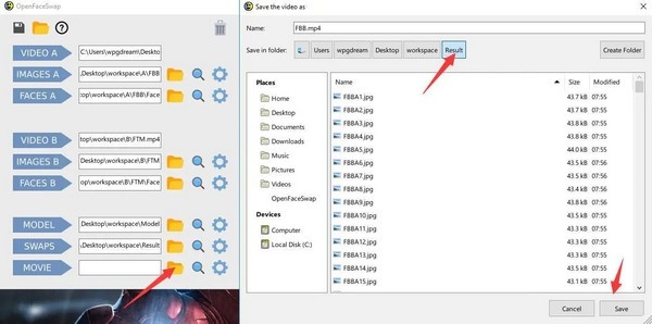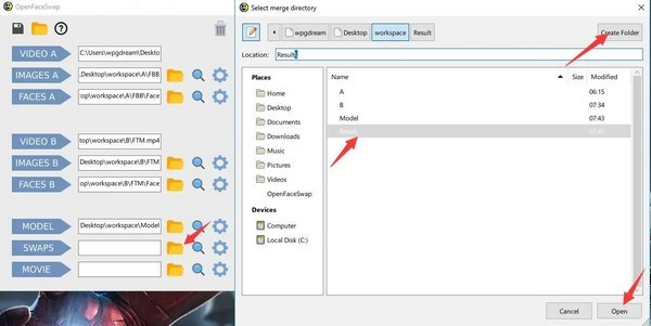 人脸替换的结果我们保存在Result,所以先通过点击文件夹选中Result ,然后点击Open。