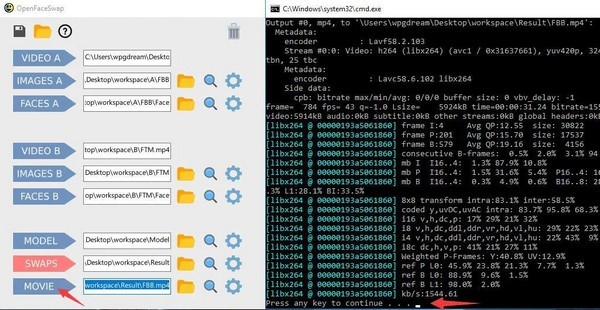 其实,FBB.mp4和FTM.mp4为换脸的视频素材,必须事先准备好。你可以自己准备,也可以用我从网上收集的两个视频。