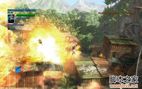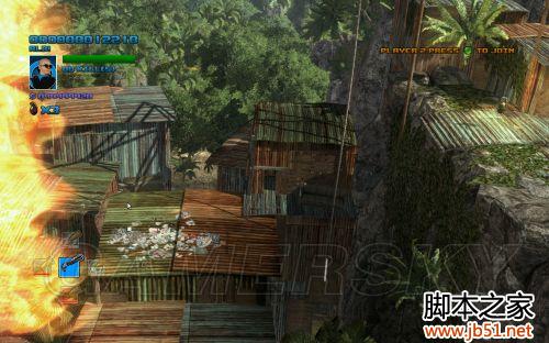 穿过雨林的时候会接到这样的一个提示,要你拯救还锁在村物里的游客。反正我们逆流而上救人也没什么。这是一个主线任务,如果没有完成就不能再继续前进,而在这里还会在一些坦克上表示出人物提示,这是要我们装定时炸弹,这些坦克是必须炸毁的,因为这些坦克挡住了我们的道路,一定要全部炸毁才能通过这里。