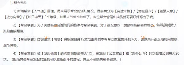 逆水寒帮会【人气值】是一种属性,用来展示帮会的活跃情况。也就是判断玩家在帮会中是否活跃。逆水寒人气值分为穷途末路】/【危在旦夕】/【差强人意】/【欣欣向荣】/【如日中天】5个等级。如果人气值比较低了称号的名字就不好听了。